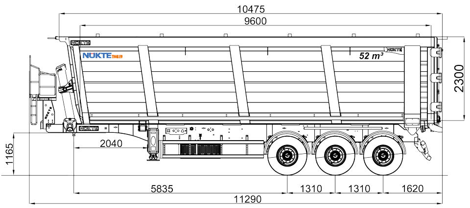 3×9 Ton kapasiteli İthal veya 3×12 Ton Kapasiteli Yerli marka Dingil (Kampana veya Diskli)
